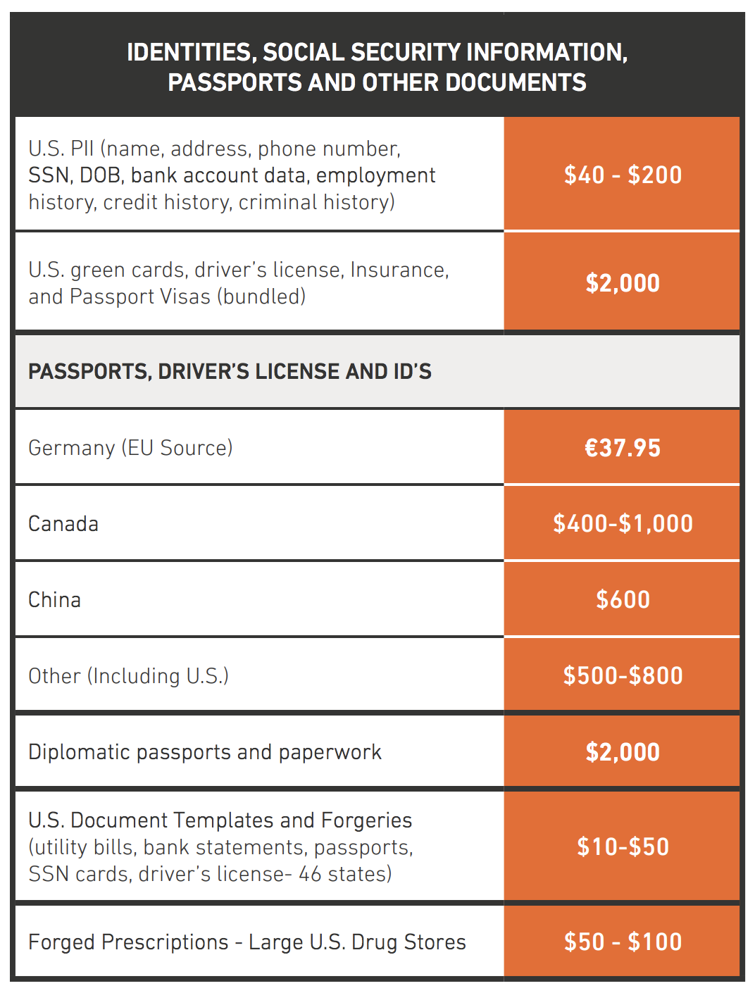 If you have time, I encourage you to read the full report. See how it applies to you and your organization. You'll find other bits of information that you might find insightful - things like value placed on sensitive information like credit cards, reward programs (hadn't even thought of this), list price associated with bank accounts and more details on the value of other sensitive data like PII. Here is an example of one such data set around the value of PII: