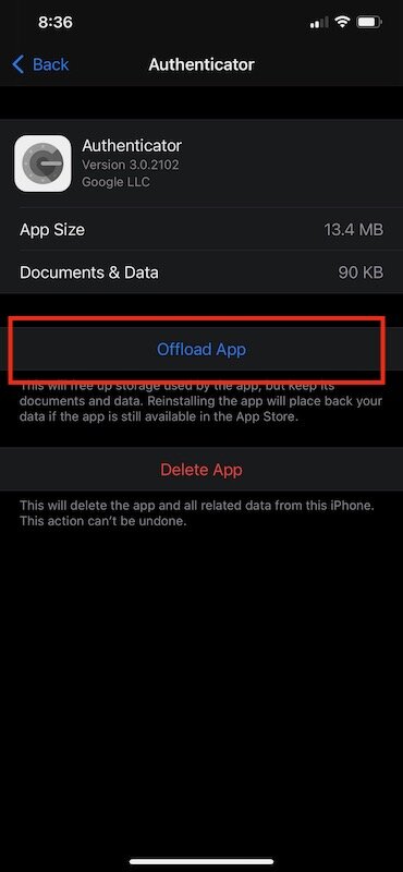 What's really nifty about this is it offloads the app without losing the data. Being this is my 2FA app, it's critical I don't lose it.