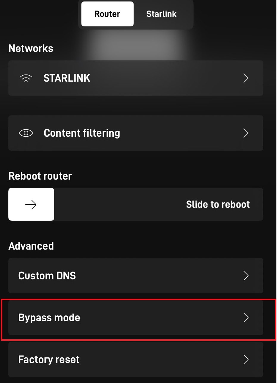 Step 1: Enable Bypass Mode on the Starlink Mini