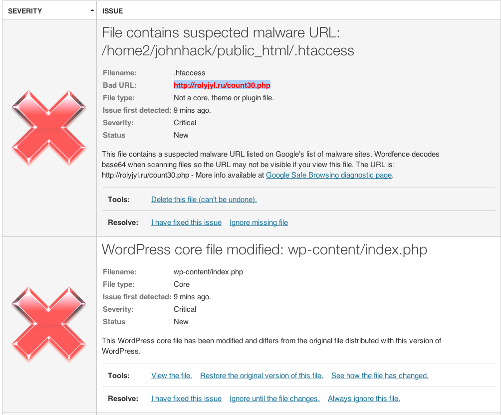 After running the scan the following issues were found: