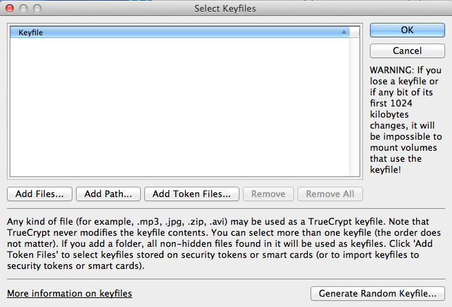 keyfiles button to add it: