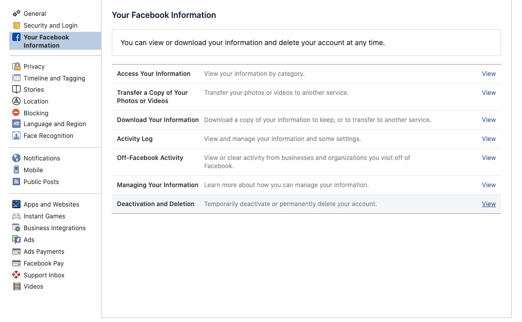Find the section that reads - "Your Facebook Information"