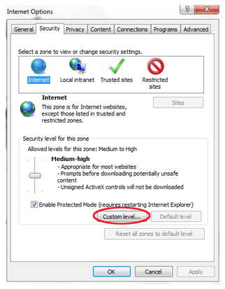 Click on the Security tab on the dialog that opens and click on custom level: