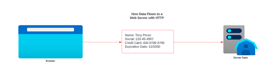 To further expand that point. Let's imagine we find ourselves on an online form. We type some information in (e.g., Name, Social, etc..). When the site is using HTTP, this is what gets sent over the network: